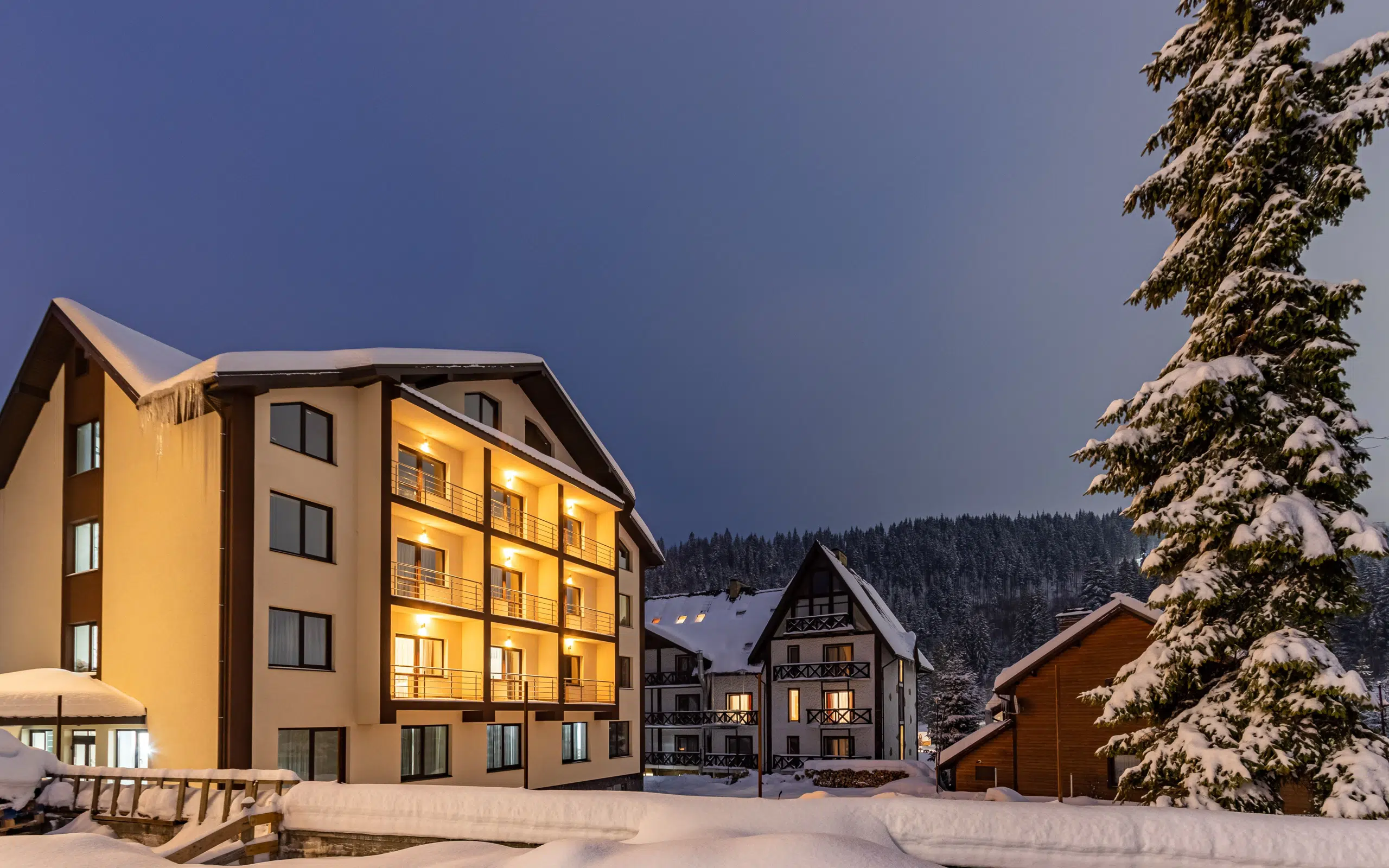 Мальовничі карпатські пейзажі, вишуканий інтер'єр та українська гостинність – все це якнайкраще описує Готель Мадісон Буковель. Знаходиться він на Гірськолижному курорті Буковель. Тут можна комфортно відпочити від галасливого міста, насолодитися красою карпатської природи та побути наодинці із собою. Відстань до першого витягу Буковель всього 900 м